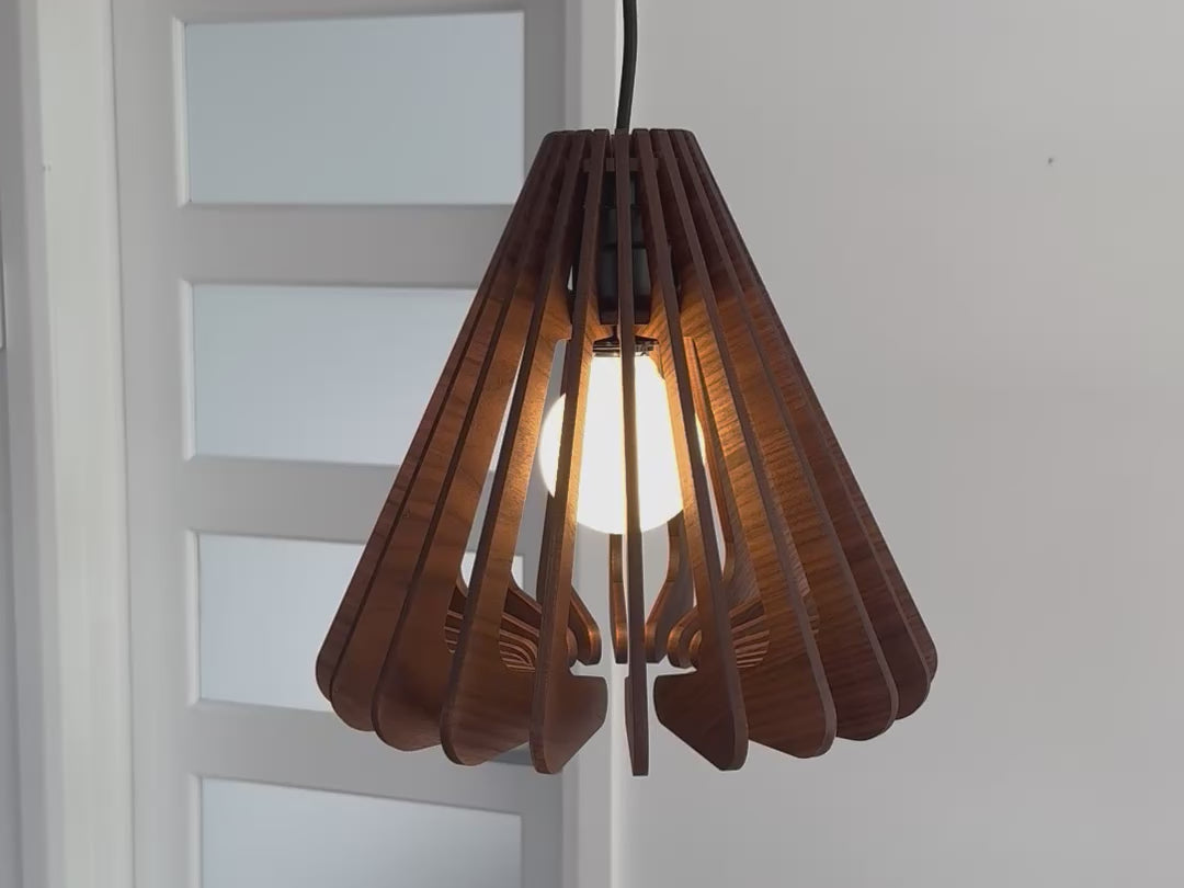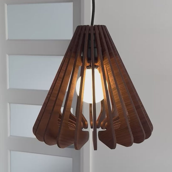 Measuring 11.7" wide by 10.9" high, this pendant casts an airy, rhythmic light that transforms any space. Available in White Oak or Walnut, it brings an architectural presence and the warmth of natural materials to your home.
